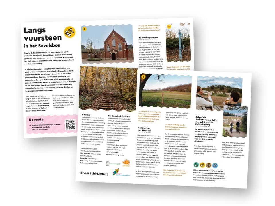 Stap in de wereld van vuursteen, een uniek materiaal dat al sinds de prehistorie door de mens wordt gebruikt. Deze vuursteenwandeling van ca. 5 kilometer leidt je door het diepe Maasdal naar het bijna 100 meter hoger gelegen plateau.