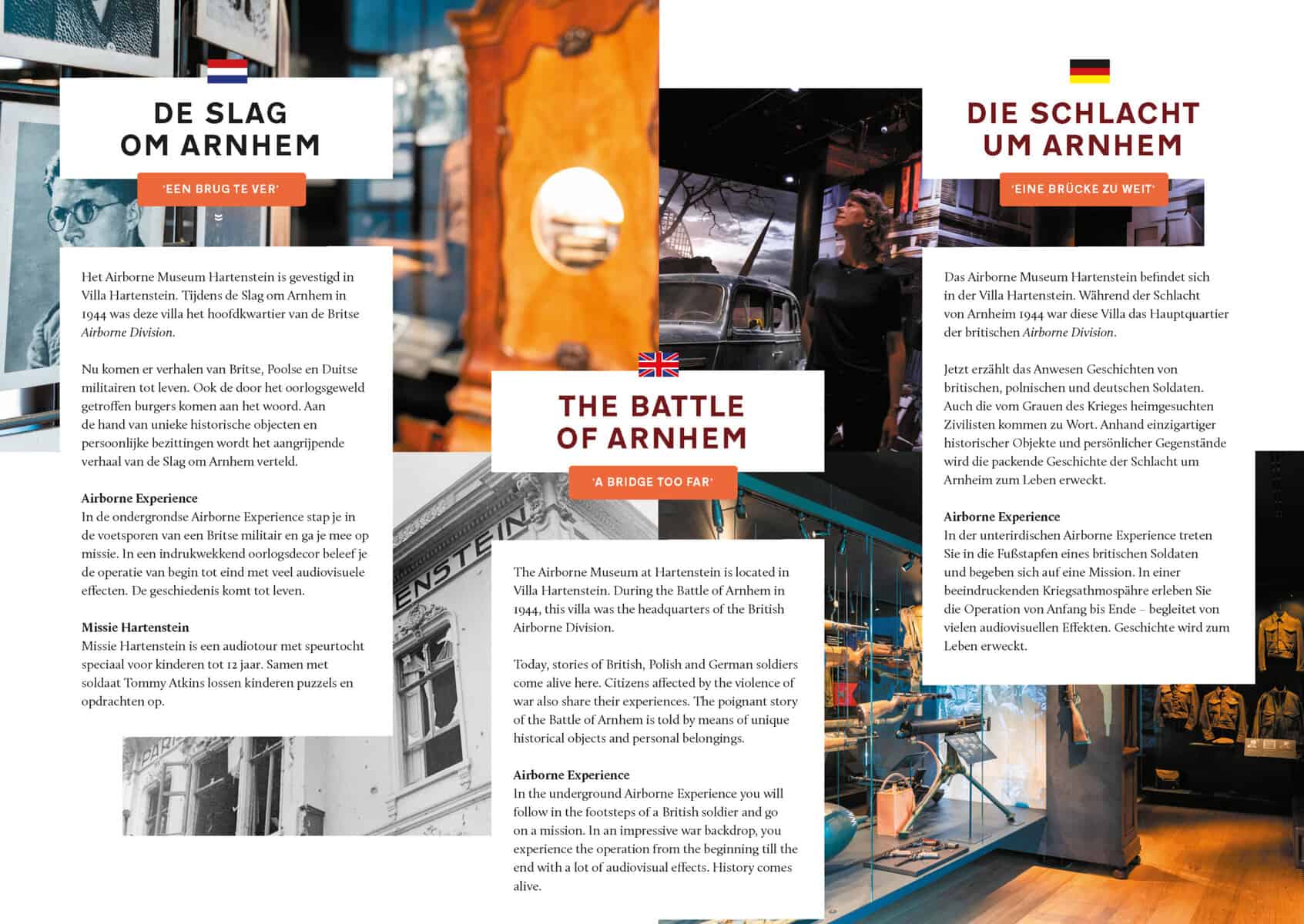 Tijdens de Slag om Arnhem in september 1944, onderdeel van de militaire operatie Market Garden, werd Hartenstein tijdens hevige gevechten het hoofdkwartier van de Britse luchtlandingstroepen. De gedurfde poging een snelle doorsteek naar het Ruhrgebied te forceren en een einde te maken aan de Tweede Wereldoorlog, mislukte. De brug bij Arnhem bleek A Bridge Too Far. Nu vertelt Hartenstein de persoonlijke verhalen van Britse, Poolse , Duitse militairen en burgers, allen vertolkt door de unieke collectiestukken van het museum.