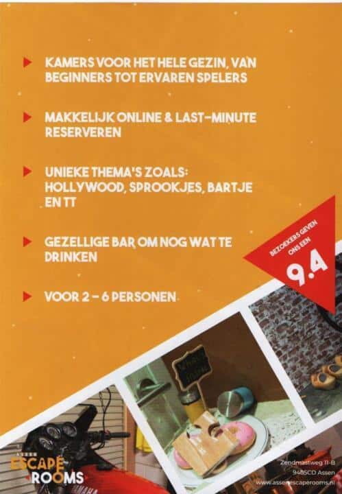 Mooie en uitdagende escape rooms, zelf ontworpen door de eigenaren van Assen Escape Rooms. Ideaal voor familieuitjes, teambuilding en meer!
