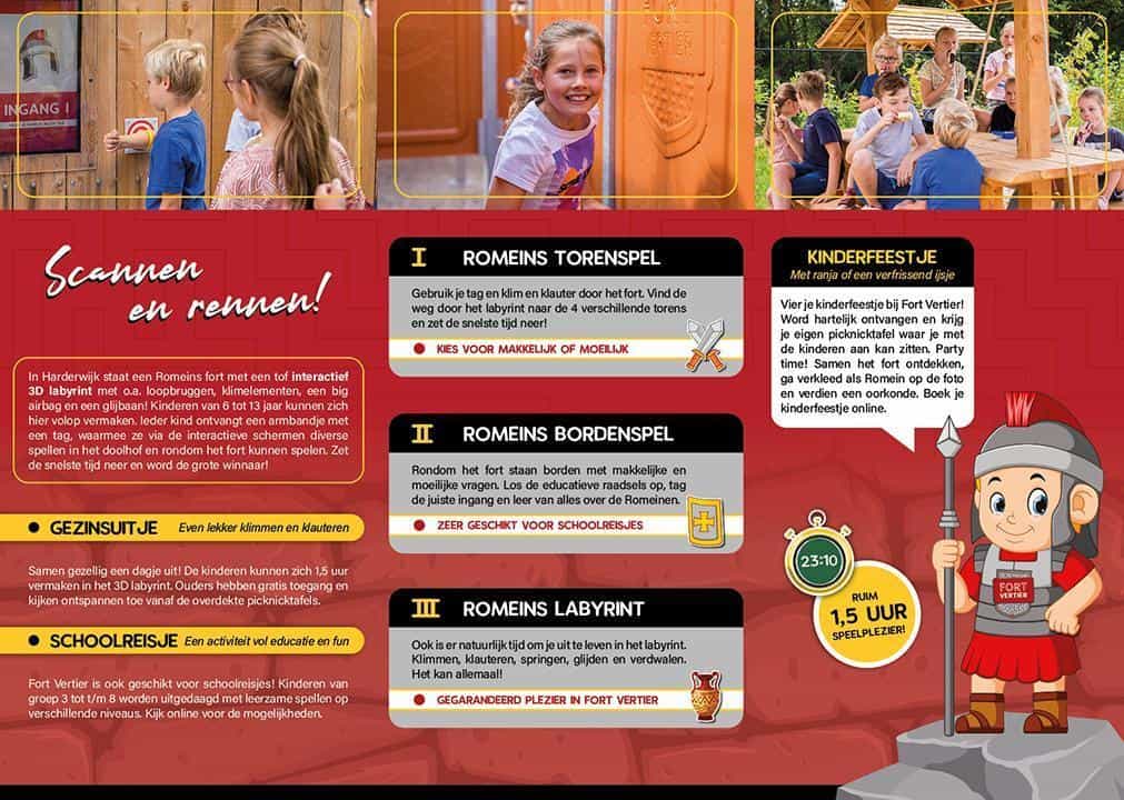 Gamen in de buitenlucht! Bij Fort Vertier duik je in de Romeinse wereld in een interactief 3D-labyrint. Hier kunnen kinderen zich helemaal uitleven. In dit doolhof moeten ze klimmen, klauteren en zoeken om spellen op te lossen. Een origineel en energiek spel, direct gelegen aan de rand van Harderwijk. Ideaal voor een kinderfeestje en kinderen van 5 tot 13 jaar.