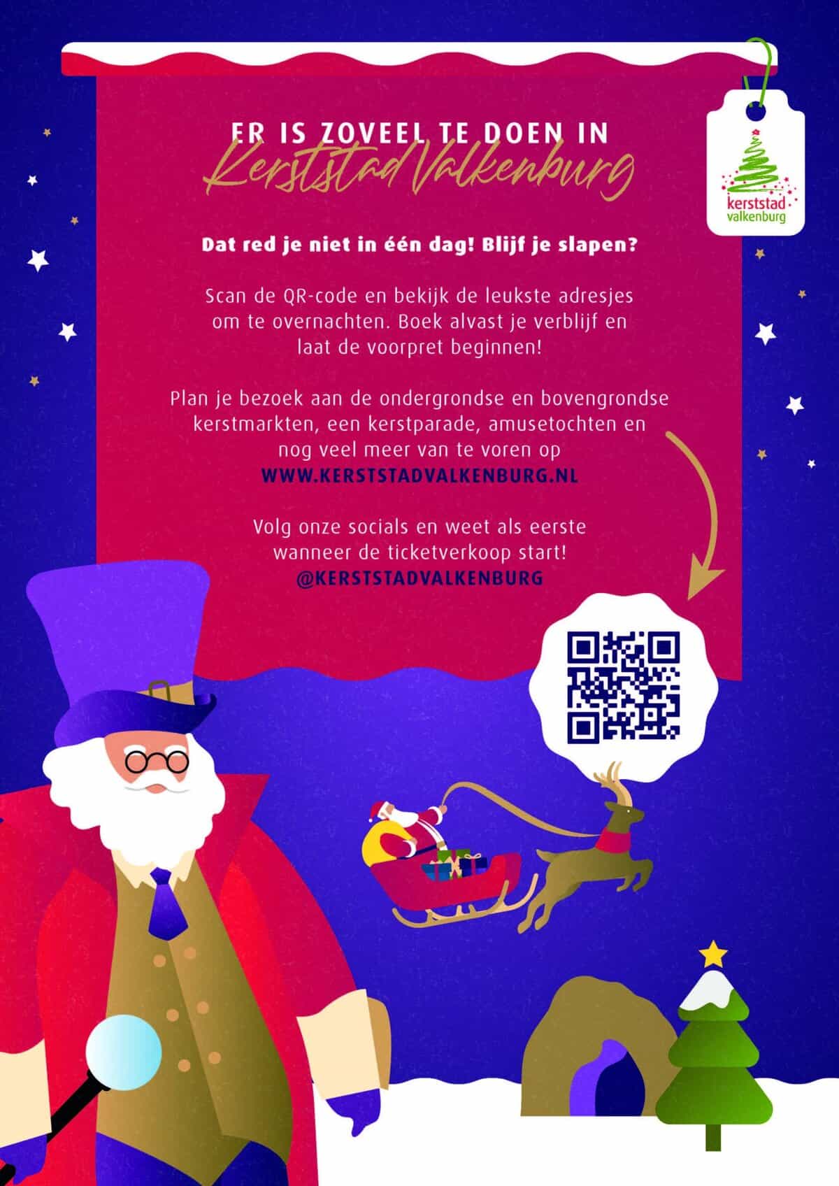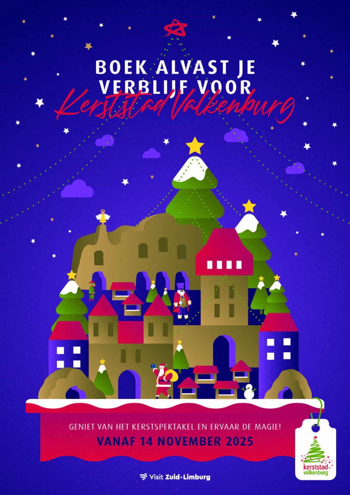 Het gerucht gaat dat de Kerstman eigenlijk uit Valkenburg aan de Geul komt. Naarmate de dagen korter worden, verandert Valkenburg namelijk in een sfeervol kerststadje in het toch al zo sprookjesachtige Heuvelland. Van 15 november 2024 t/m 5 januari 2025 is er weer zoveel te beleven in Kerststad Valkenburg. Je ziet, ruikt, hoort en proeft hier in alles kerst en er is hier zoveel te beleven!