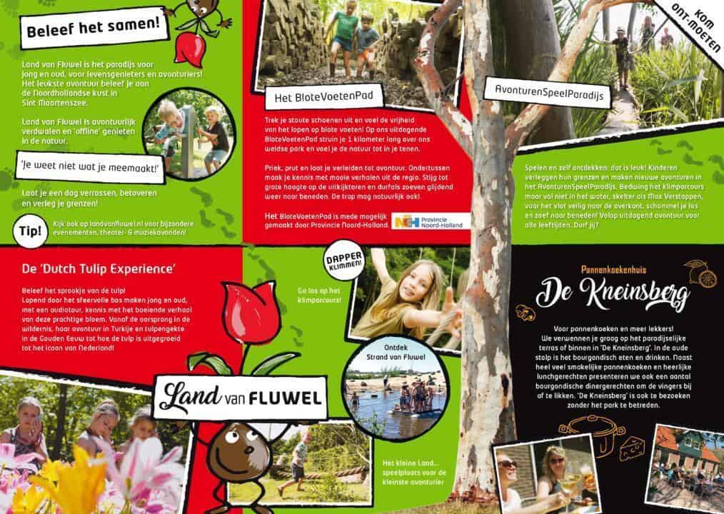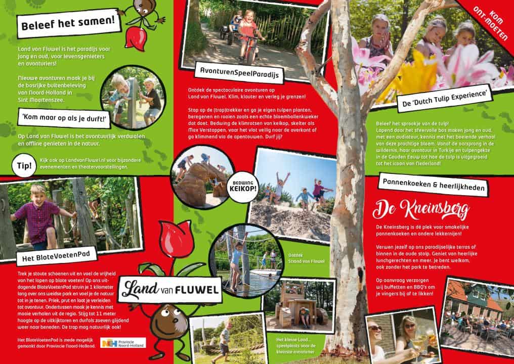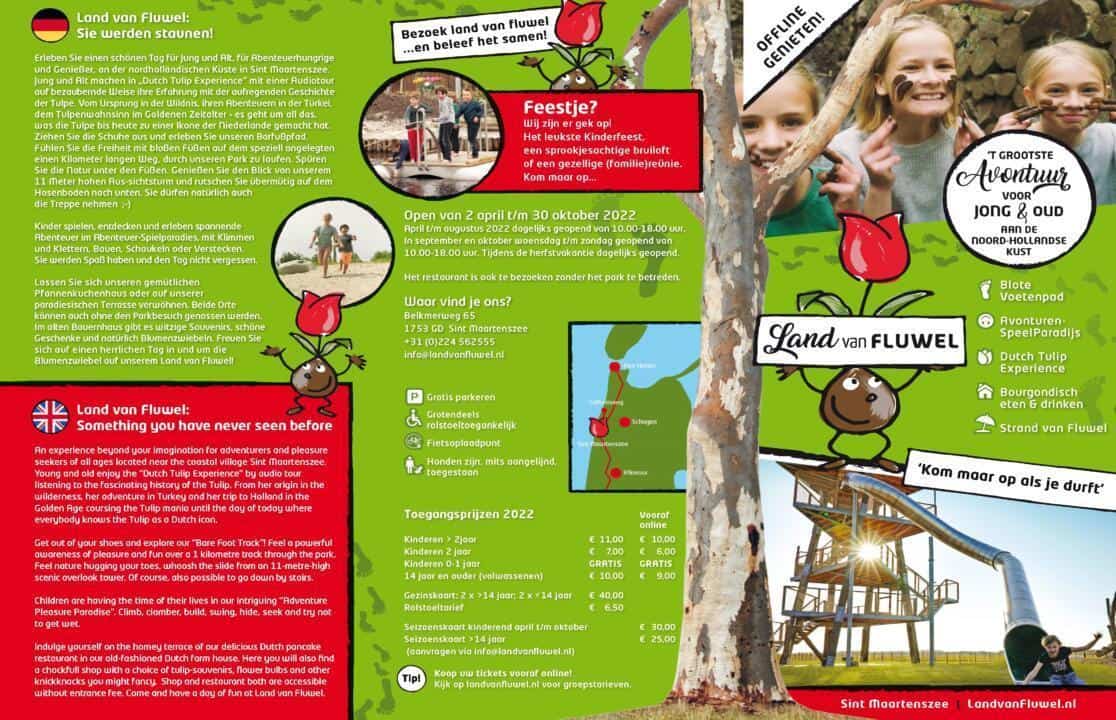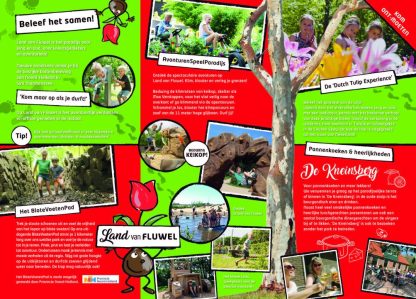 Op Land van Fluwel is het voor elk kind en ouder vrij in de bol genieten. Avonturiers en Levensgenieters gaan terug de natuur in. Prieken en prutten bij Strand van Fluwel en wilde avonturen beleven op het Blote Voetenpad. Struin 1 kilometer over het weidse park en verleg je grenzen. Uniek is ook de sprookjesachtige route door het bos waarbij je met een audiotour kennismaakt met de geschiedenis van onze bekendste bloem de tulp.
