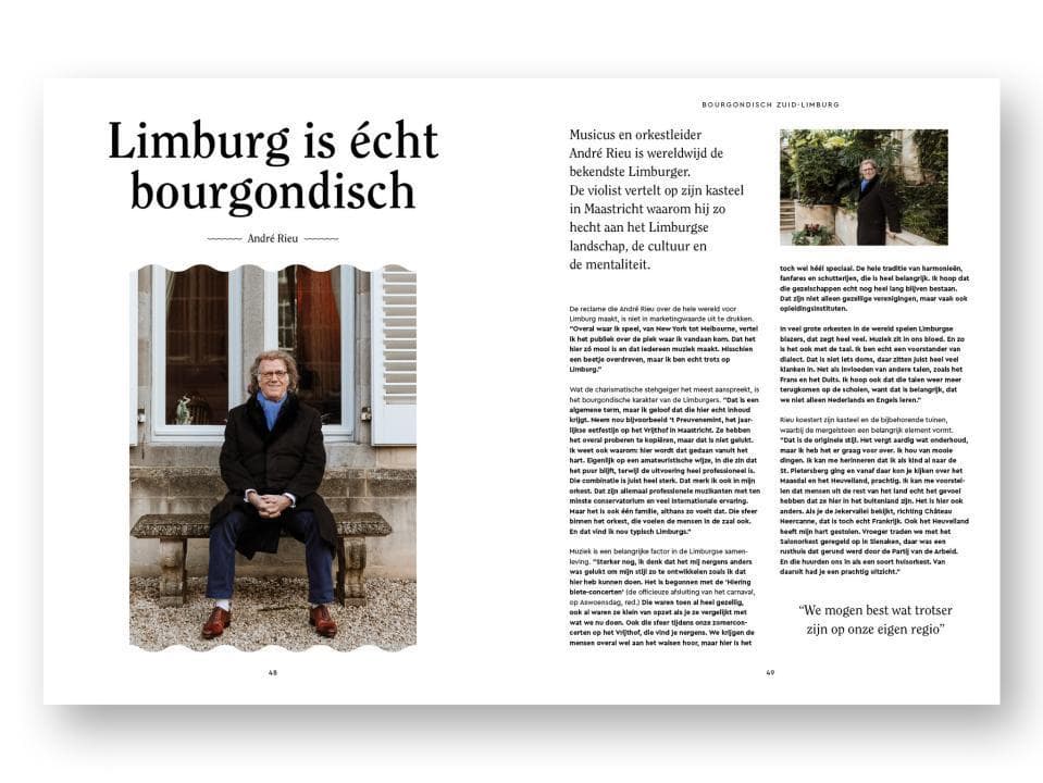 Ook André Rieu, zonder twijfel ’s werelds bekendste Limburger, treedt maar wat graag op als ambassadeur voor deze mooie streek: vanuit zijn kasteel aan de rand van Maastricht doet hij uitgebreid uit de doeken waarom hij maar geen genoeg kan krijgen van Zuid-Limburg.