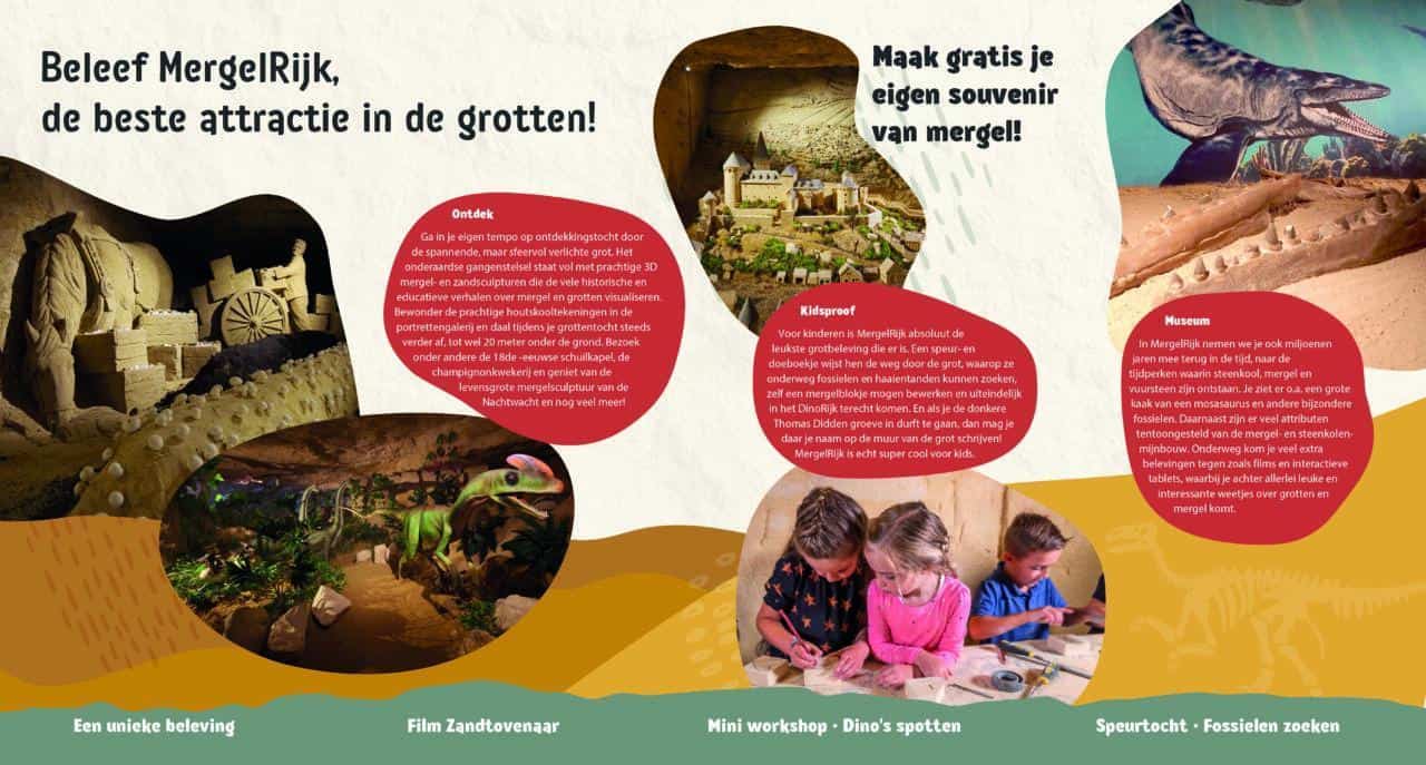 MergelRijk is een grot vol met interessante verhalen die middels mergel- en zandsculpturen tot leven worden gebracht. Je wordt terug naar de tijd meegenomen dat de blokbrekers de mergel “uit de berg” haalden en zo de grotten maakten.