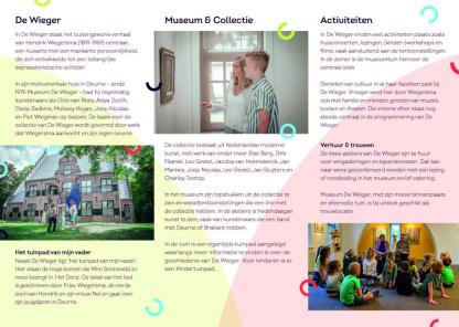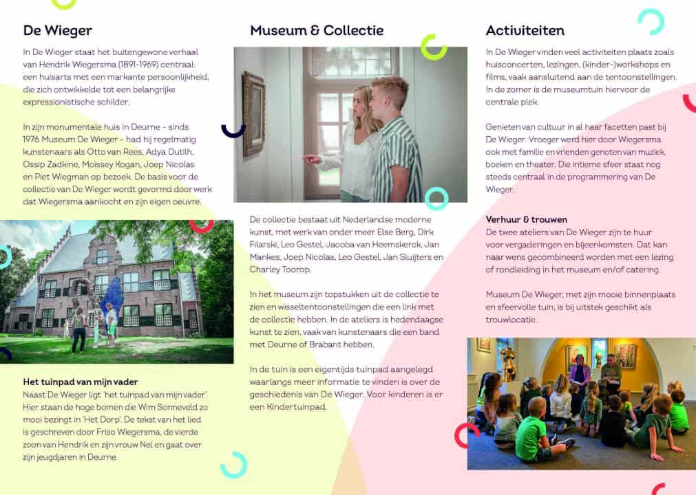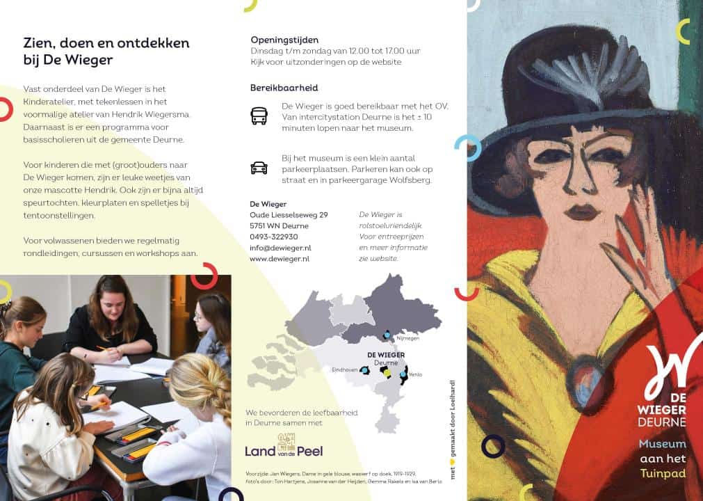 Museum De Wieger is gevestigd in het voormalige woonhuis, dokterspraktijk en schildersatelier van Hendrik Wiegersma (1891-1969). In het huis krijg je een beeld van het zijn leven en werk. Wisselende exposities sluiten aan bij de collectie van het museum. In de ateliers zie je wisseltentoonstellingen van hedendaagse kunstenaars, vaak uit Deurne en omgeving.