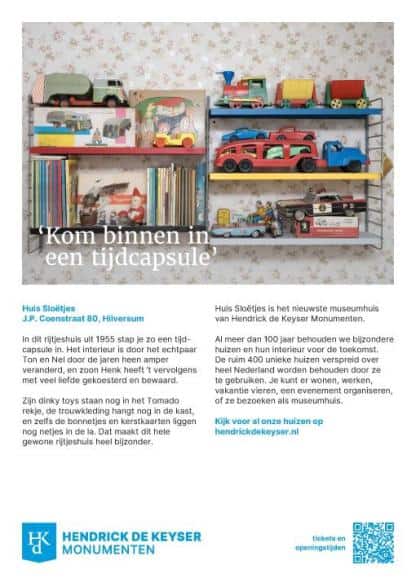 Zijn dinky toys staan nog in het Tomado rekje, de trouwkleding hangt nog in de kast, en zelfs de bonnetjes en kerstkaarten liggen nog netjes in de la. Dat maakt dit hele gewone rijtjeshuis heel bijzonder.