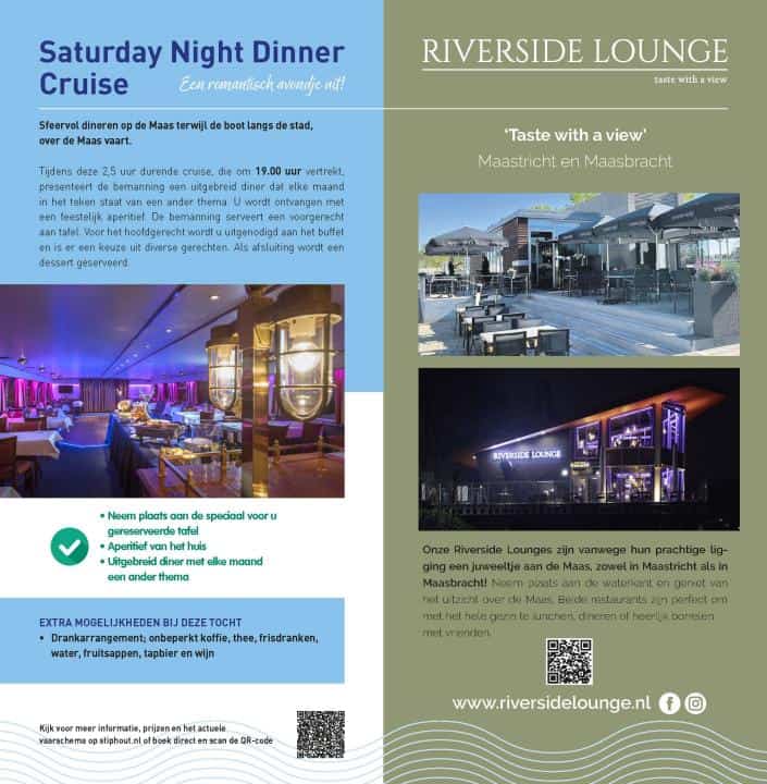 Er is een ruime keuze in diverse boottochten, van een ca. 1 uur durende Rondvaart op de Maas tot een complete dagtocht naar Luik en van een historische Vaarroute door de binnenhaven van Maastricht tot een romantische Saturday Night Dinner Cruise.
