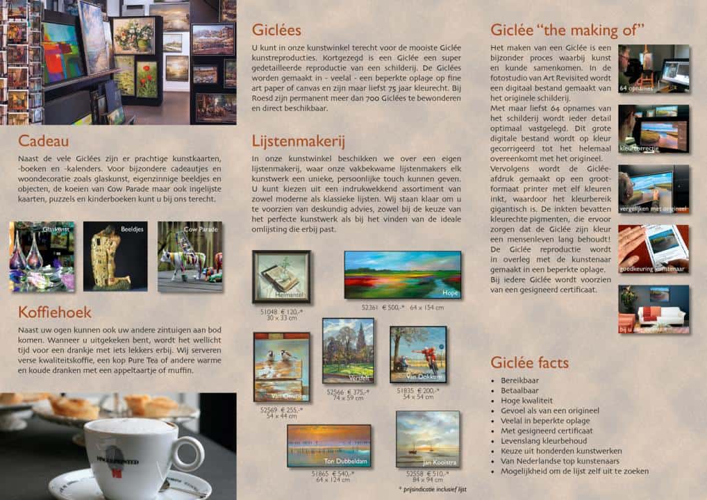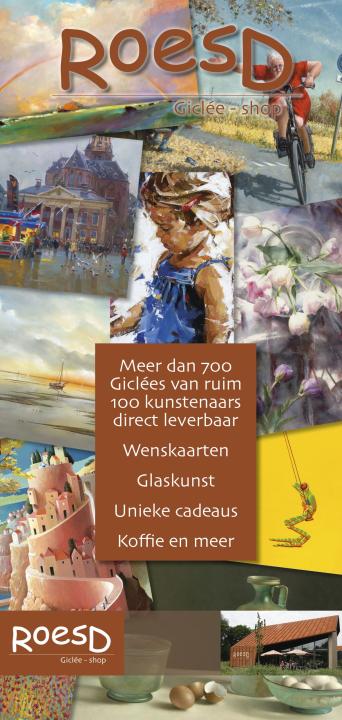is een gezellige kunstwinkel die bestaat uit een showroom met ruim 700 Giclées, cadeauwinkel en brasserie. Kunstwinkel Roesd ligt centraal in Noord-Nederland nabij het punt waar Friesland, Groningen en Drenthe elkaar raken. U vindt er rust in een stijlvolle, kunstzinnige omgeving.