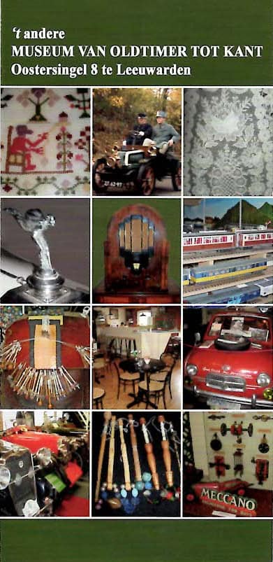 In een oud pakhuis “Koophandel” aan de grachten van Leeuwarden is een bijzonder museum gevestigd: Het andere museum van oldtimer tot kant, waar de passies en verhalen centraal staan. Rondom de oldtimer collectie zullen wij reis en rally verhalen vertellen. In dit museum is de eerste elektrische auto te bewonderen : “Baker elektrisch” uit 1907. In totaal zijn er meer dan 30 vooroorlogse oldtimers, Het museum bevat een spectaculaire treinbaan van groot spoor. Er klinkt muziek uit oude radio’s en er is een grote collectie meccano aanwezig. Op de afdeling textiel laat De permanente tentoonstelling “kantreis door Europa” je kennismaken met kant en prachtige merk- en stoplappen. Ook is er aandacht voor het handwerkonderwijs zoals dat gegeven is in het verleden. En in het museum is veel oud naaigerei aanwezig en te bewonderen. De mooiste 18de -eeuwse kanten die ook Maria Louise van Hessen-Kassel aan haar kleding droeg zijn te zien in een stijlkamer uit die tijd. Ook het verhaal van Mata Hari wordt verteld in dit museum.