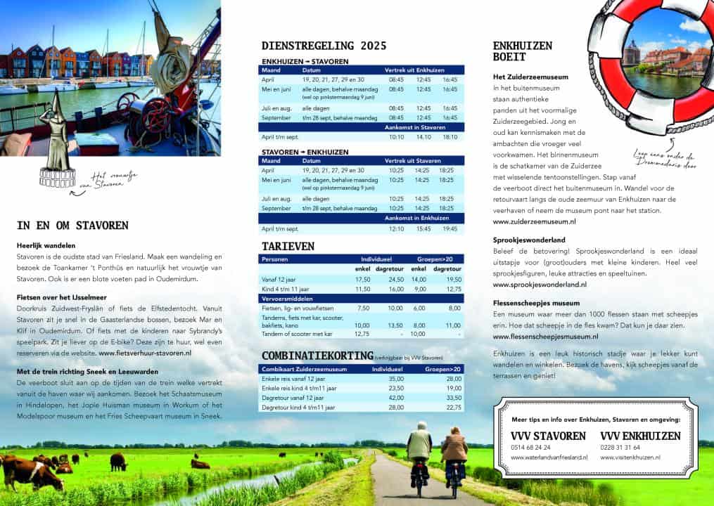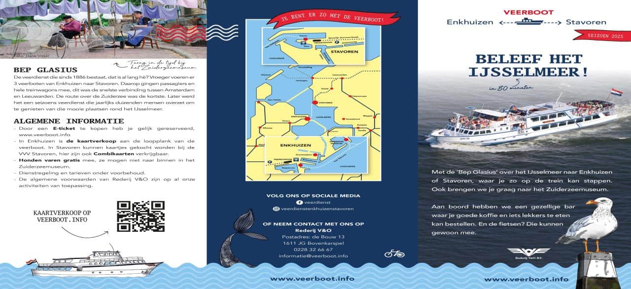 Vaar je met ons mee? Met de “BEP GLASIUS” over het IJsselmeer. Van Enkhuizen naar Stavoren, of omgekeerd. De boot meert aan vlakbij het treinstation. Je fiets kan mee aan boord voor een fietstochtje aan de overkant of als onderdeel van de fietsvakantie. In Enkhuizen hebben we het Zuiderzeemuseum, een gezellige haven waar je lekker kunt eten en een leuk stadje. In Stavoren natuurlijk even langs het bekende vrouwtje en dan de natuur in!