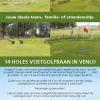 Onze nieuwe locatie is aan de Langvenweg in de Boekend ( Venlo ). We hebben hier een nieuwe 14 holes voetgolfbaan aangelegd. Met de kennis die we de afgelopen jaren hebben opgedaan, is weer een mooie , afwisselende en uitdagende baan gerealiseerd.
