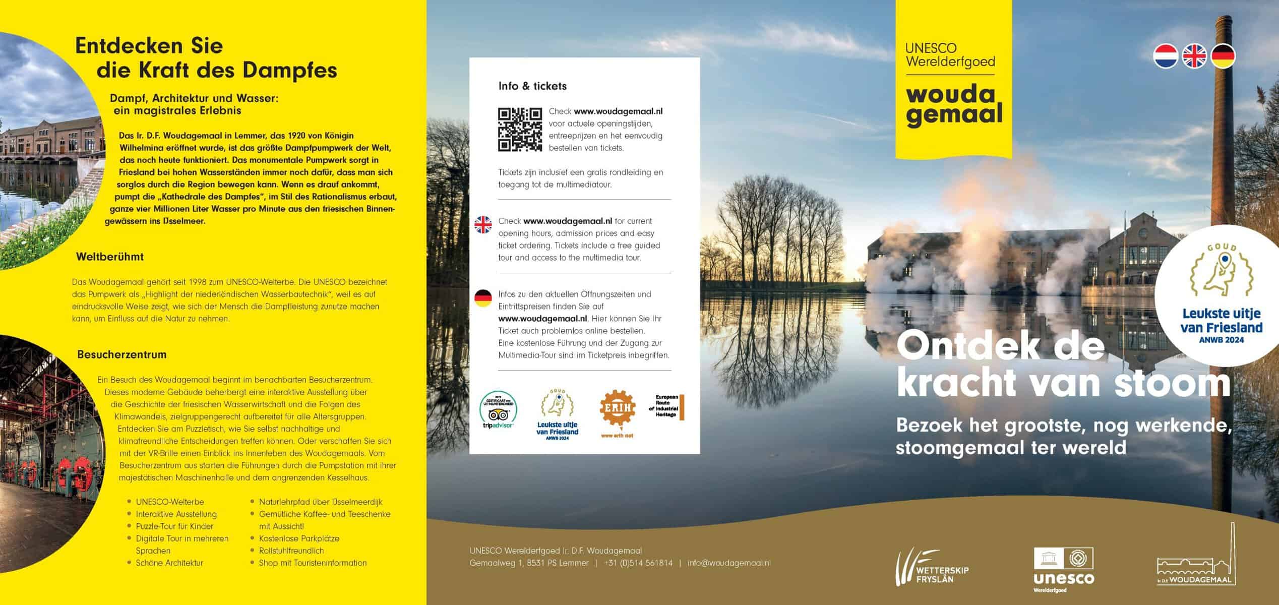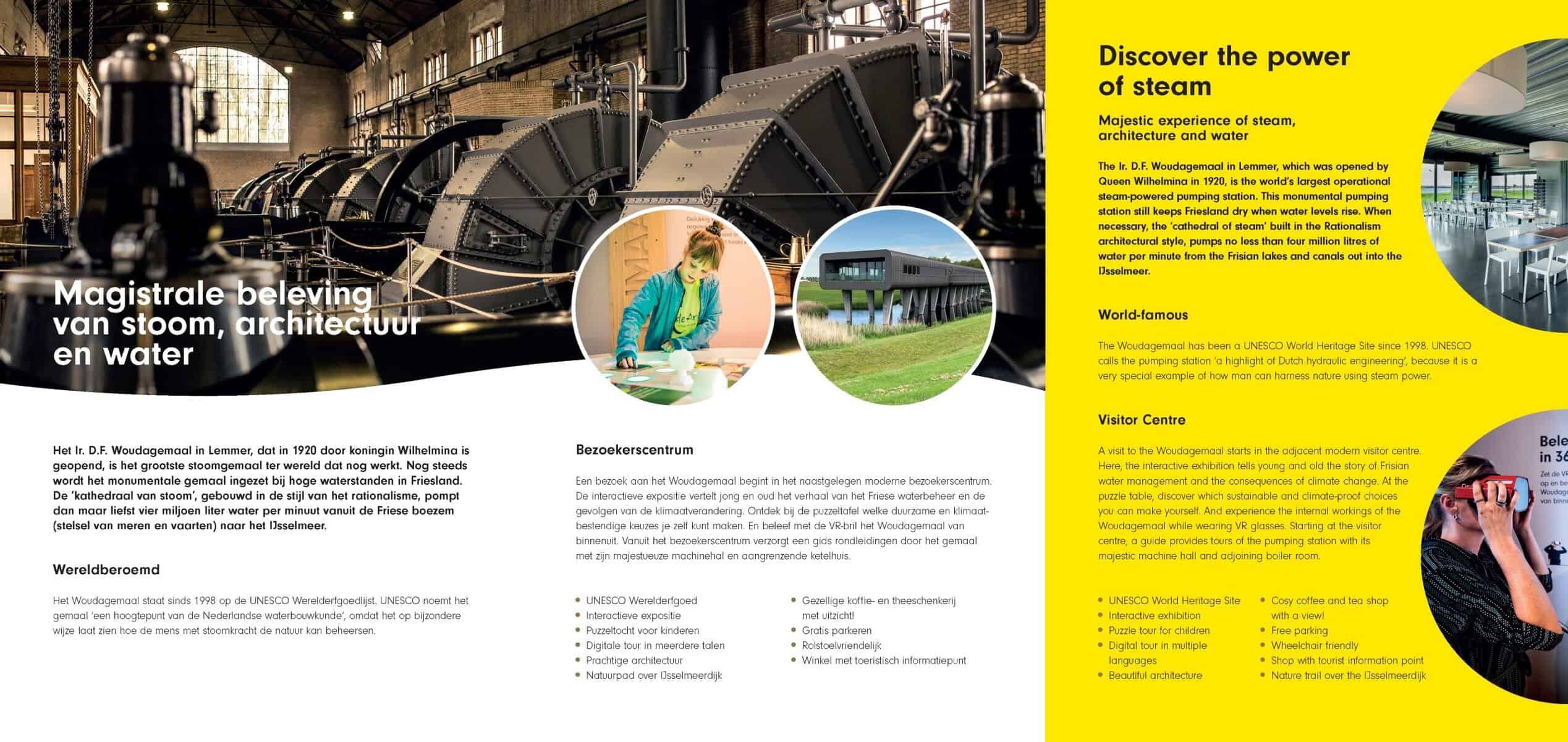Het UNESCO Werelderfgoed Ir. D.F. Woudagemaal in Lemmer is het grootste functionerende stoomgemaal ter wereld en vierde in 2020 haar 100e verjaardag. Al sinds 1920 wordt het gemaal bij hoge waterstanden aangezet om het overtollige water uit de boezemwateren te lozen. In 1998 is het geplaatst op de UNESCO Werelderfgoedlijst.