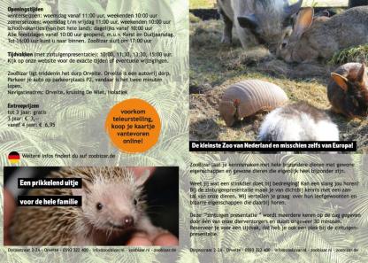Door de kleine opzet is het altijd mogelijk oog in oog te staan met de dieren die er leven. Veel dieren zijn gehuisvest in open verblijven. Er wordt een interactieve rondleiding gegeven waarbij sommige dieren uit hun verblijf gehaald worden en er de mogelijkheid is deze aan te raken of zelfs op de hand te krijgen.